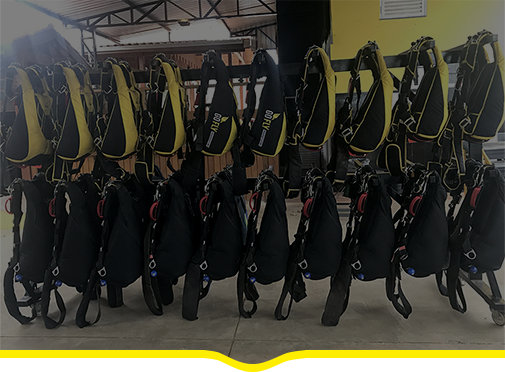 Equipamentos Nossos equipamentos seguem os mais rigorosos padrões mundiais de segurança e precisão. Dispomos de mais de 12 paraquedas novos e de última geração. Somos certificados pelo centro técnico referência de manutenção no Brasil. -